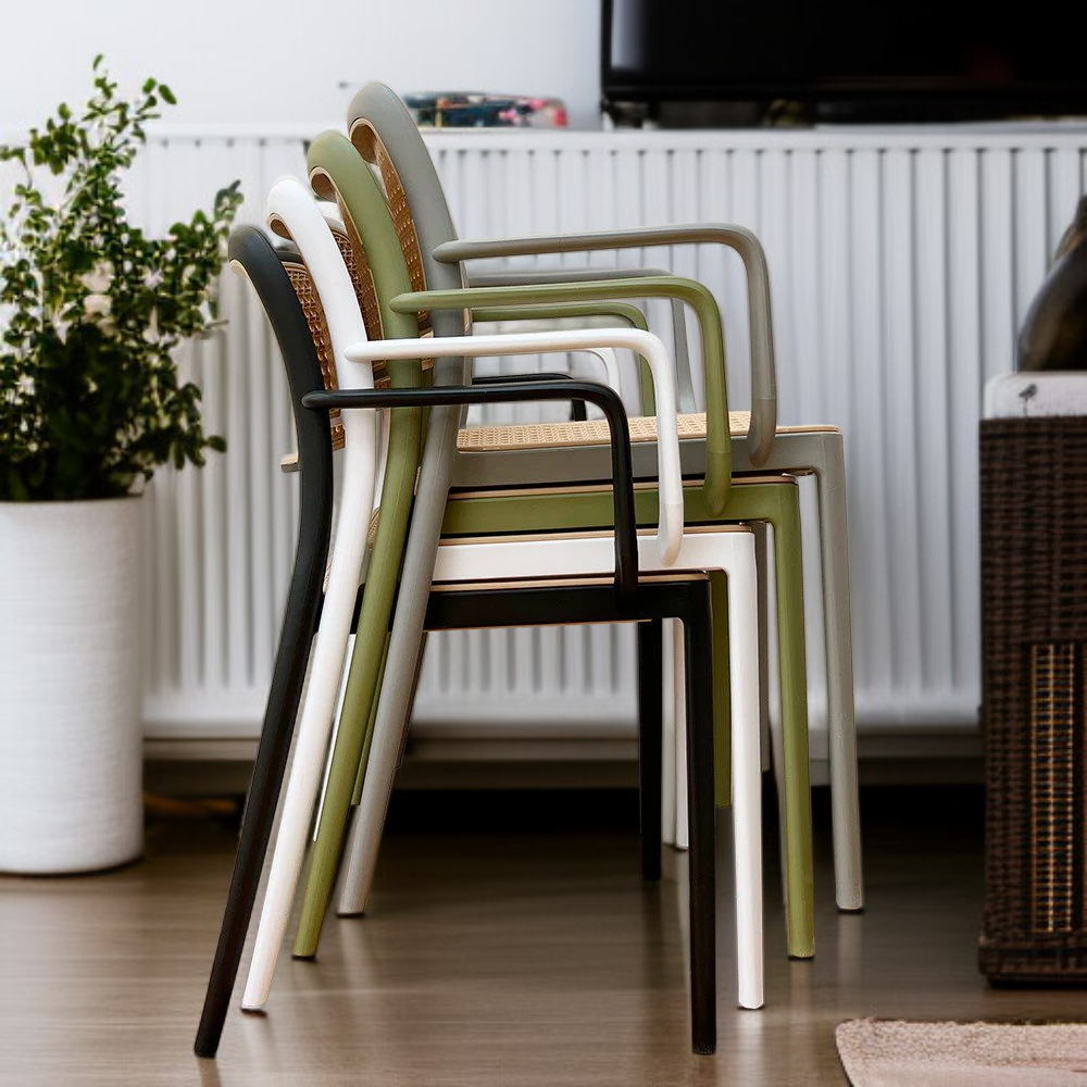 ● 내추럴한 라탄 소재와 모카 컬러의 조화로 어떤 공간에도 세련되고 따뜻한 분위기를 연출합니다. ● 야외 카페, 테라스, 베란다 등 다양한 장소에 어울리며 장식용으로도 탁월한 인테리어 효과를 자랑합니다. ● 인체공학적 암체어 디자인으로 장시간 앉아도 편안함을 제공하며, 내구성이 뛰어나 오랜 기간 사용할 수 있습니다. ● 가벼운 무게와 손쉬운 관리로 이동과 청소가 간편하여 실내외 어디서든 활용도가 높습니다.